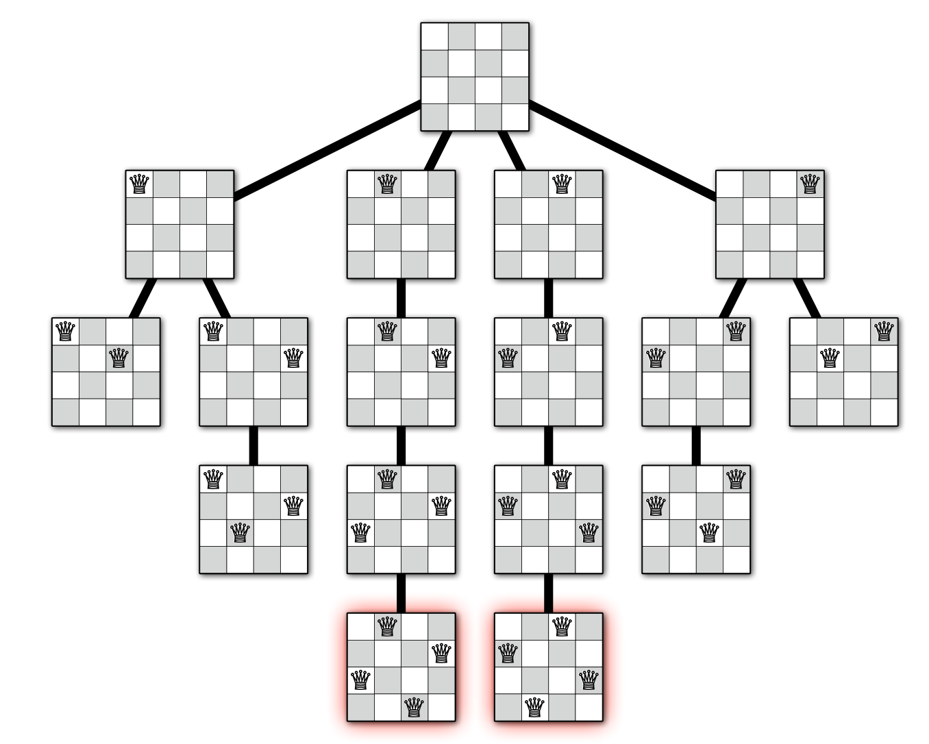 BACKTRACKING(u) if at a solution: return success for each child v of u : if promising(v) : //u의 자식노드 subproblem v가 promising한지 판별 result <- BACKTRACKING(v) if result ≠ failure: return result return failure우리는 Backtracking 중 N Queens problem에 대해 자세히 알아볼 것이다.